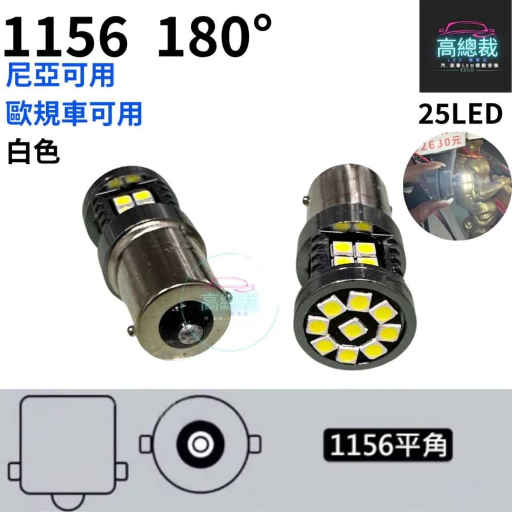 • 【高總裁LED 】台灣現貨 1156 尼亞可用 歐規車可用 單芯 12~24V 室內燈 白光 黃光 平角 斜角
