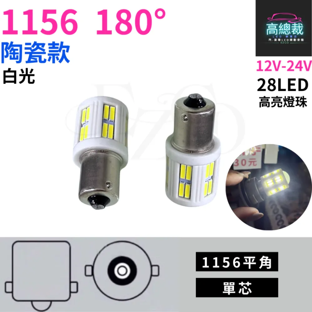 • 【高總裁LED 】台灣現貨 1156 陶瓷款 單芯 12~24V 白光 黃光 平角 斜角汽車 方向燈 煞車燈 倒車燈