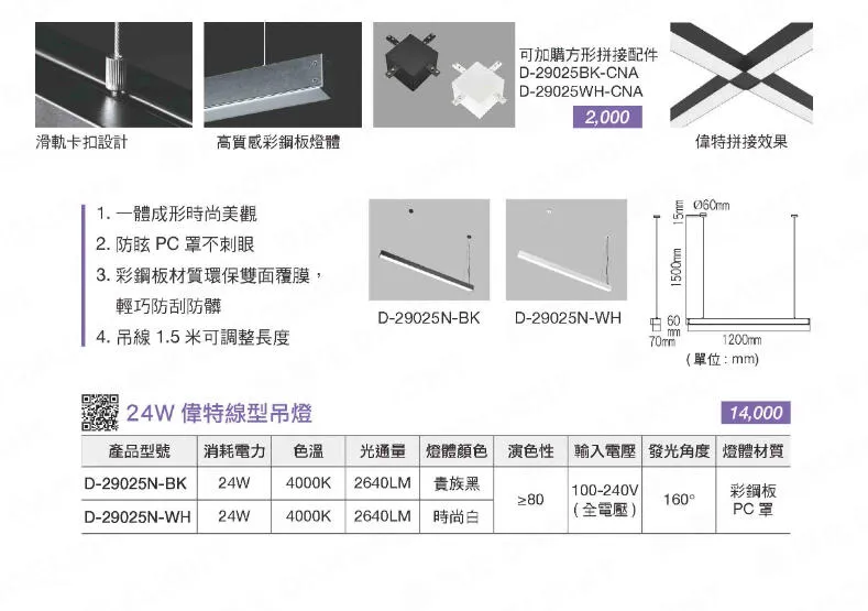 商品舞光 LED 48W 羅特線型吊燈 日光燈型吊燈 工廠辦公照明 無藍光 D-29026N 黑白兩色