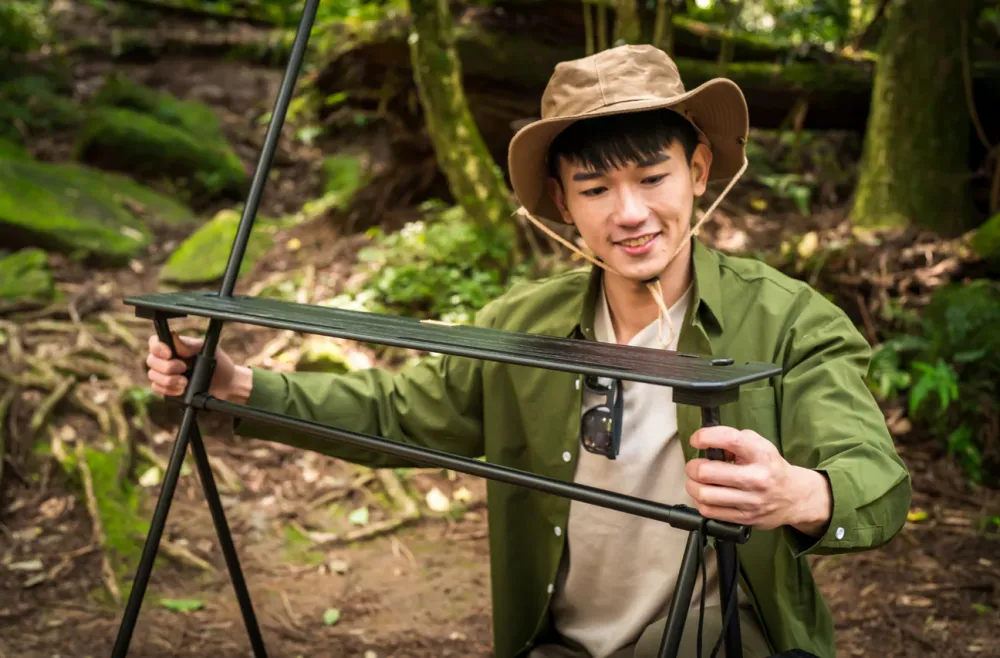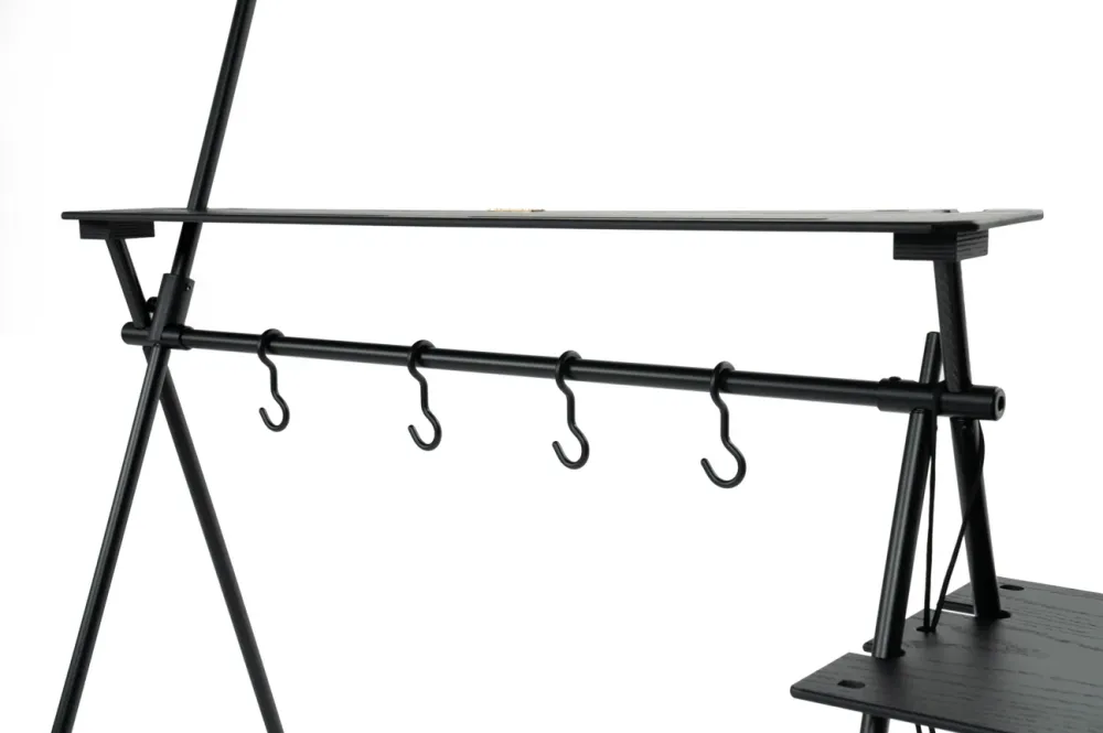戶外吊掛架加購天版,木質的優雅質感,在吊掛架上方增加額外置放空間,料理時更輕鬆愜意,讓你露營不手忙腳亂。