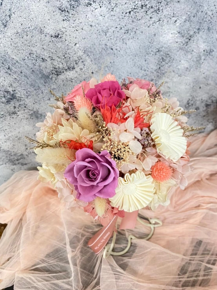可銜接講師資格證照 1. 瀑布捧花 2. 新花材創作 3. 花禮創作