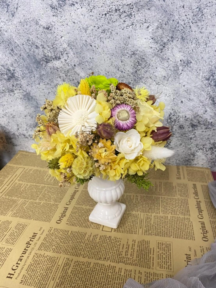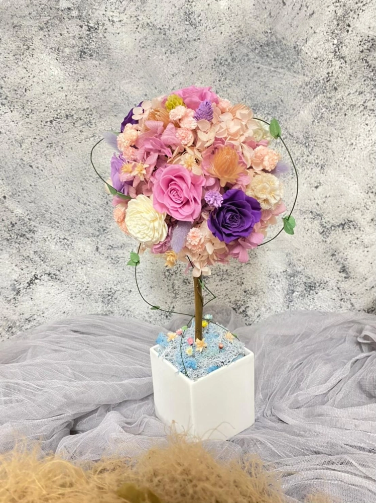 中級:3.圓形古典盆花 4.緞帶禮盒花