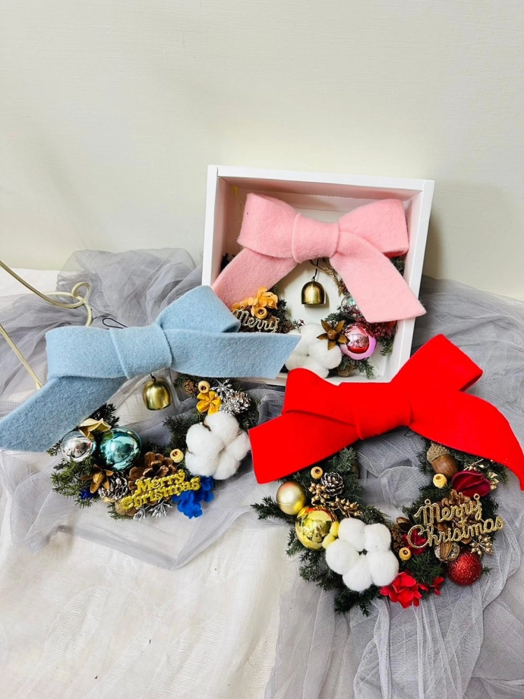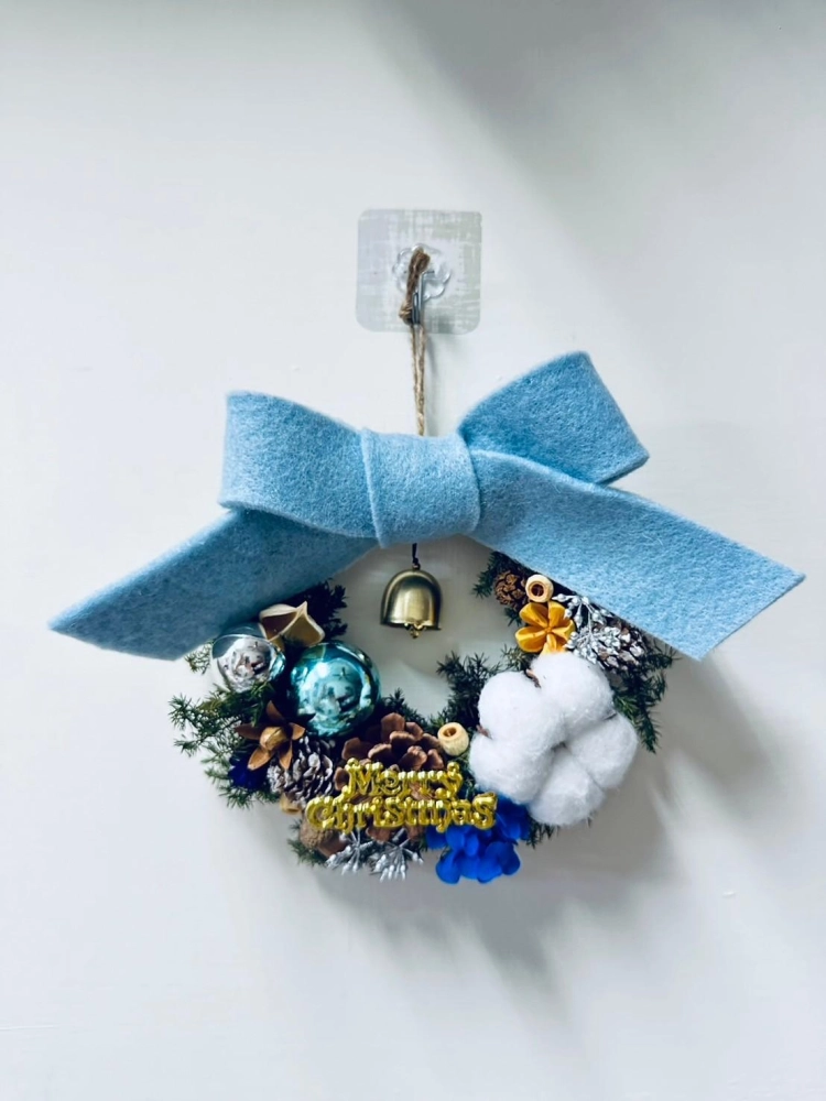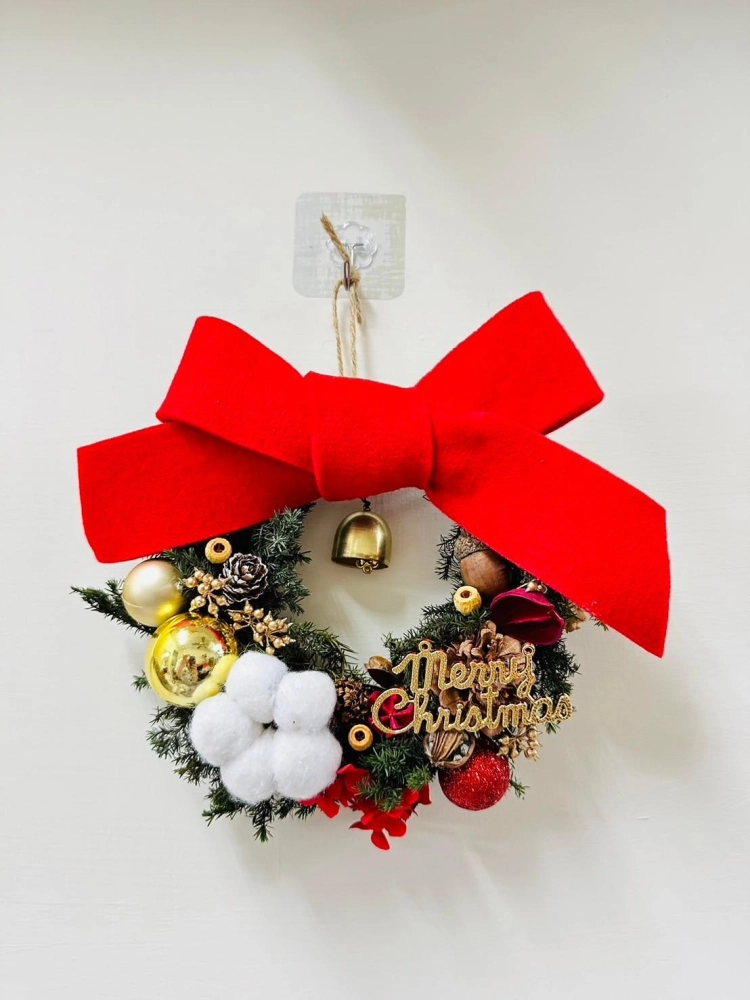 擁有超大羊毛氈蝴蝶結的花環附上超響亮的小鈴鐺 絕對是掛門上的首選