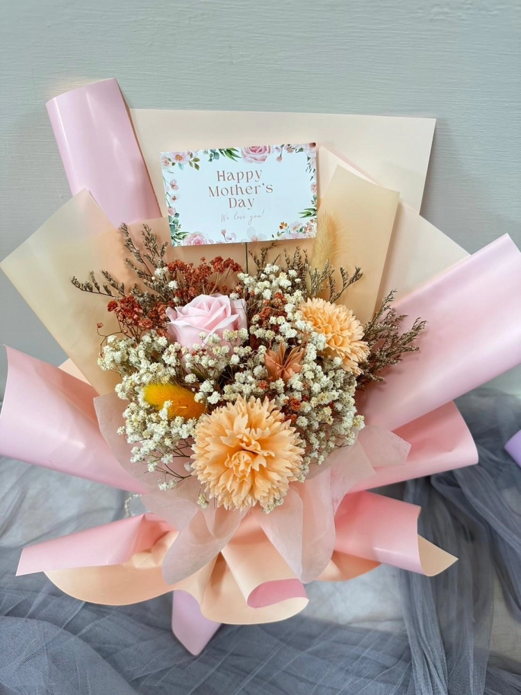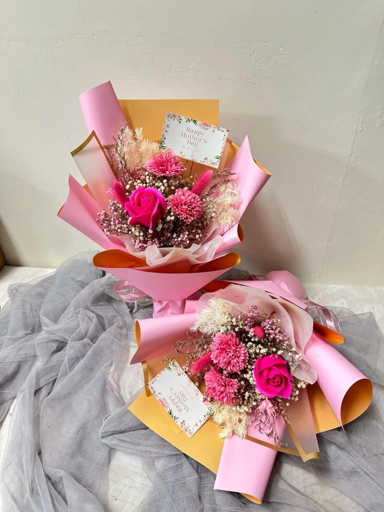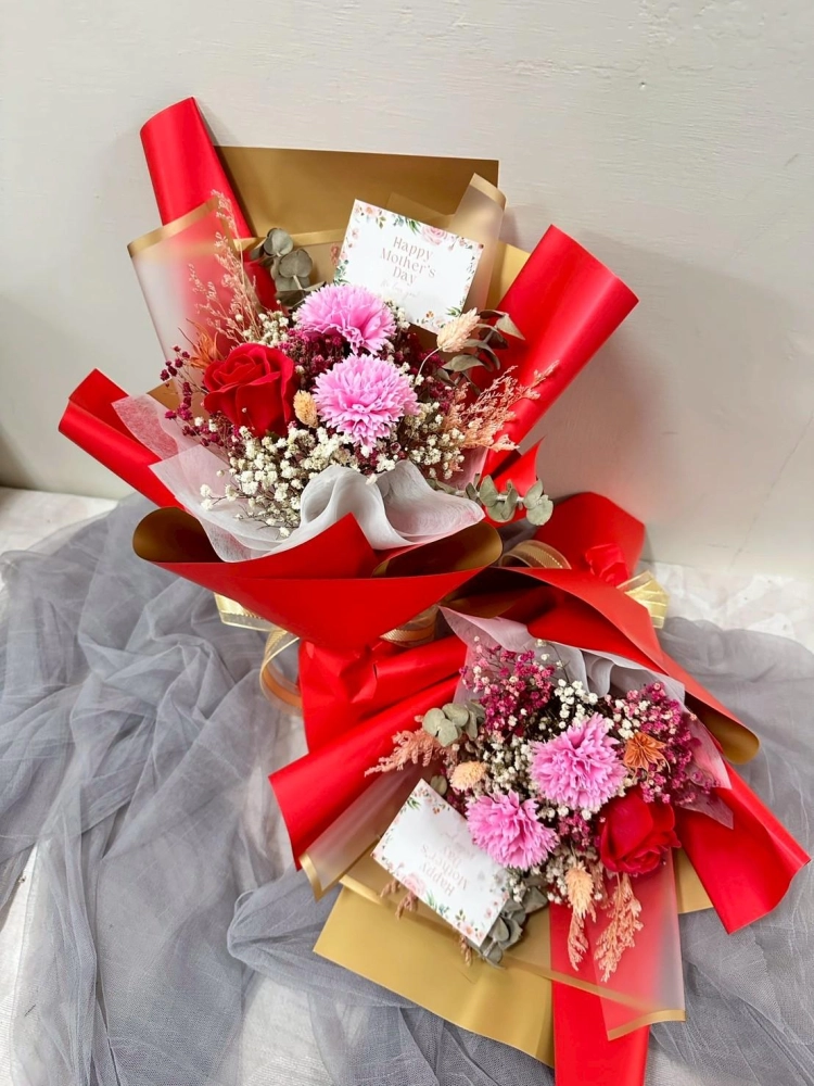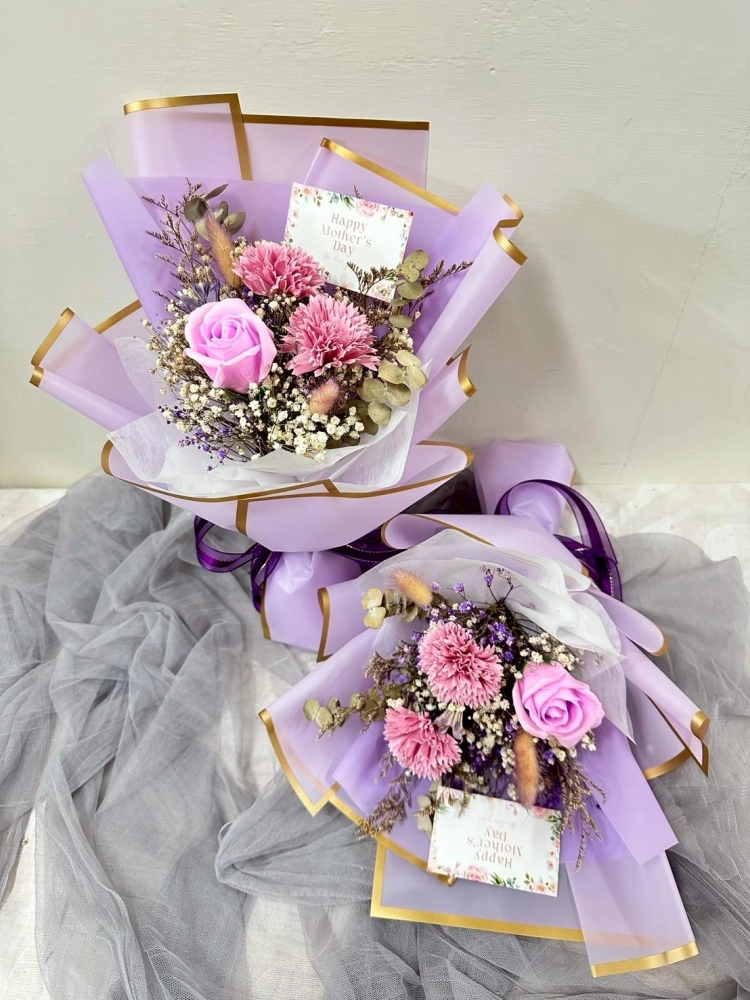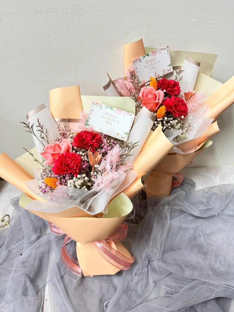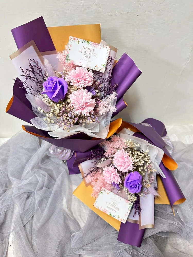 內含2朵康乃馨&1朵玫瑰 (香皂花)