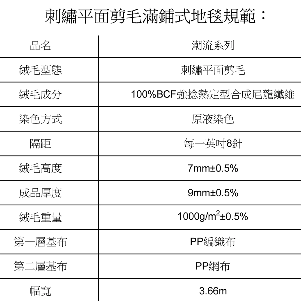 材質:100%BCF強捻熱定型合成尼龍纖維