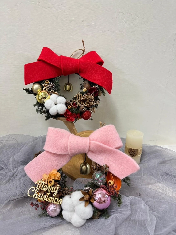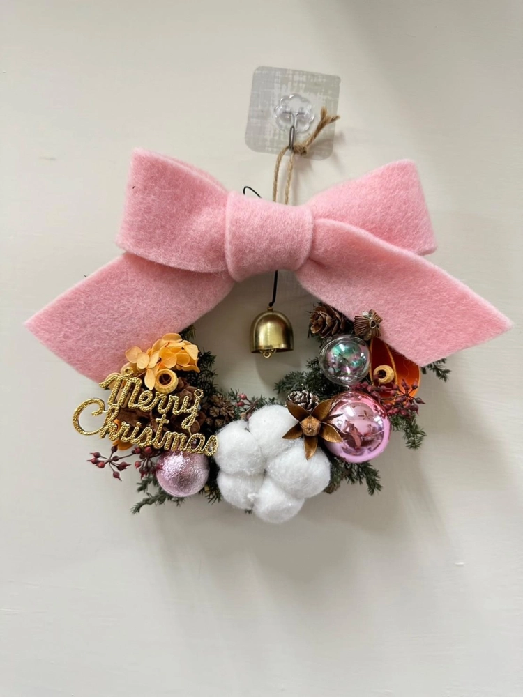 擁有超大羊毛氈蝴蝶結的花環附上超響亮的小鈴鐺 絕對是掛門上的首選