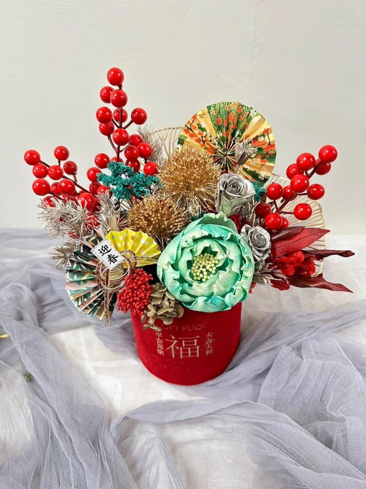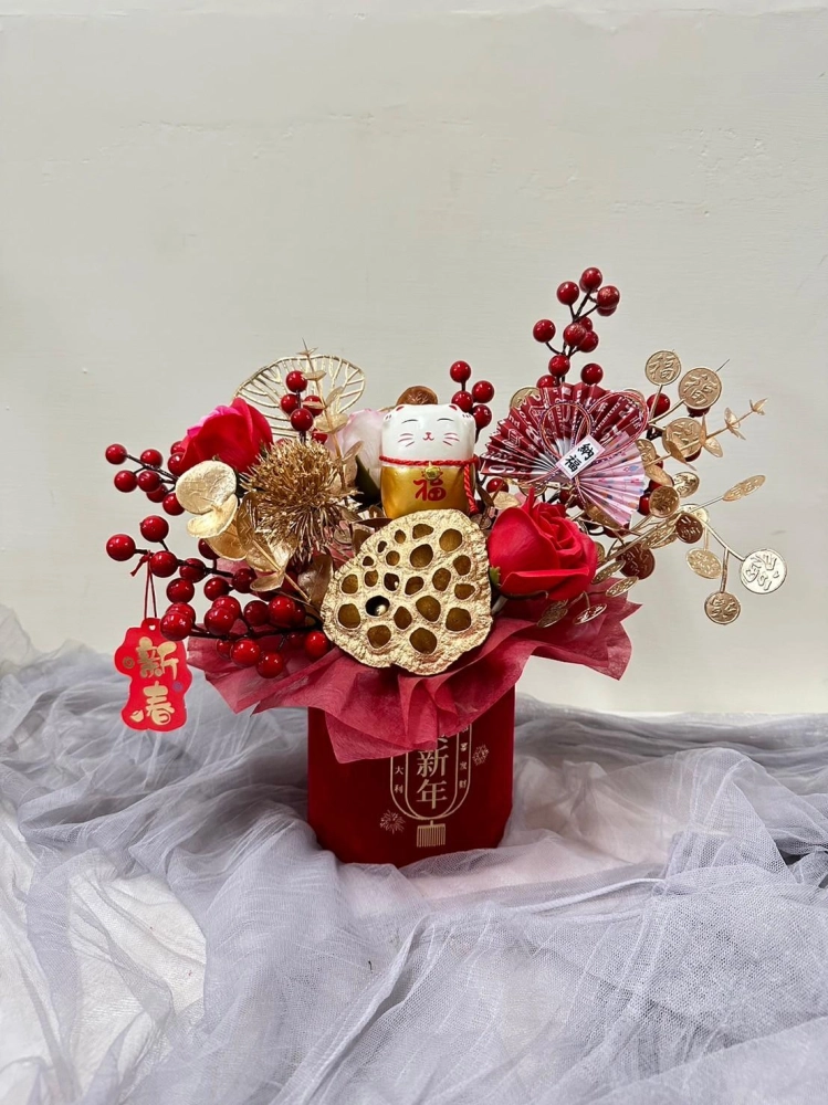 招財貓款為乾燥花+人造花