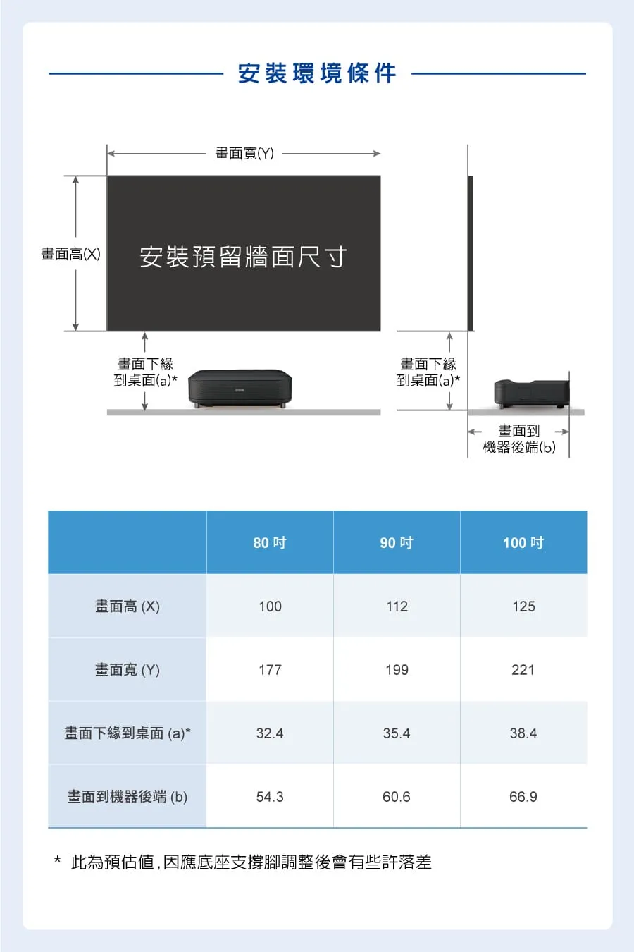 尺寸 – 投影距離:61~120吋