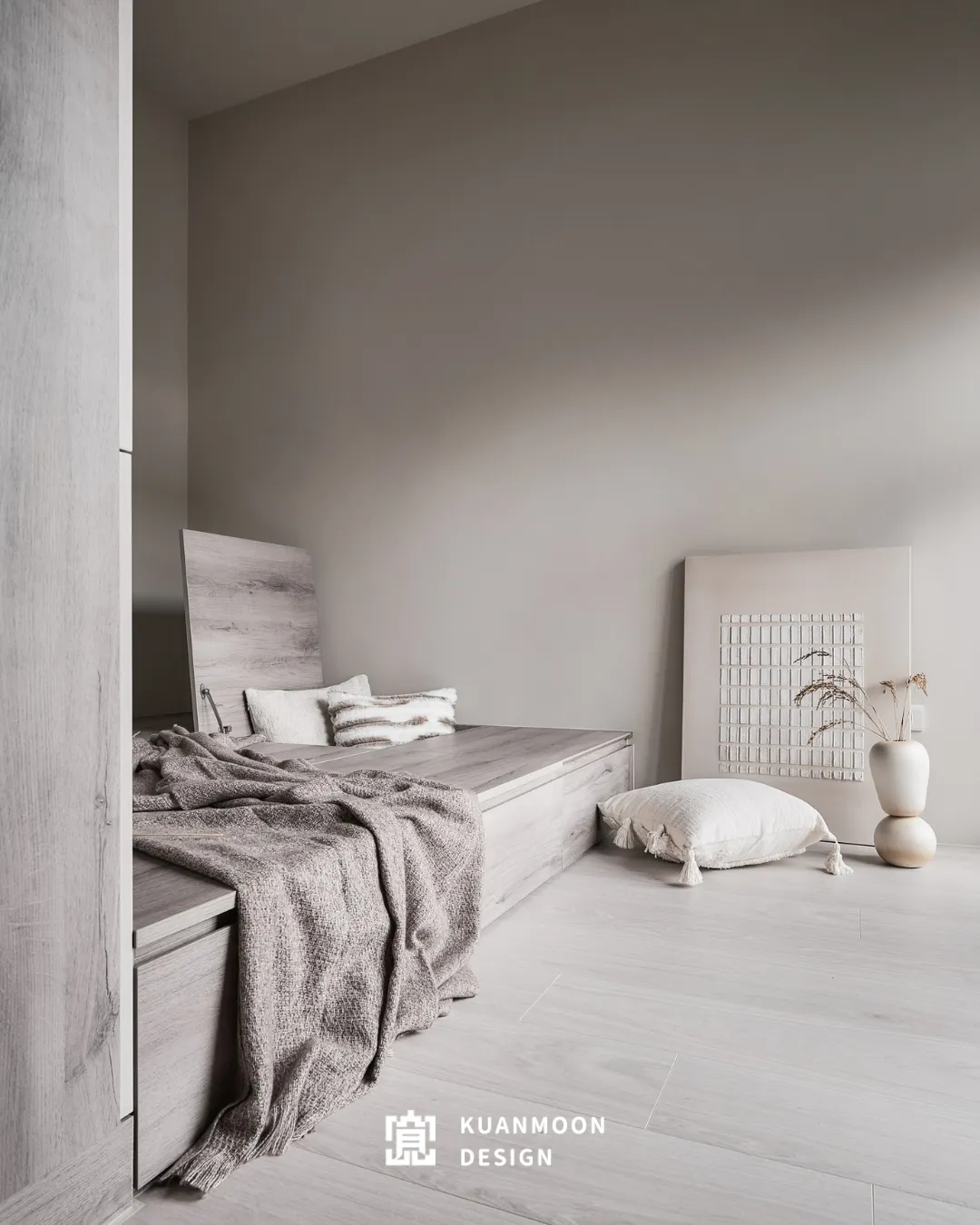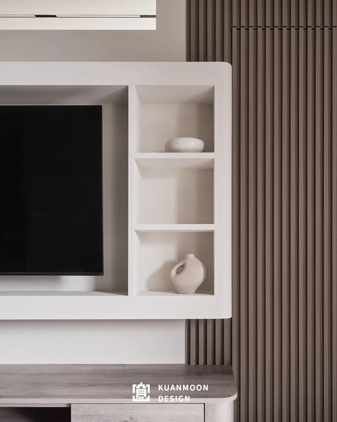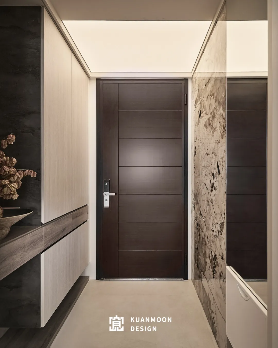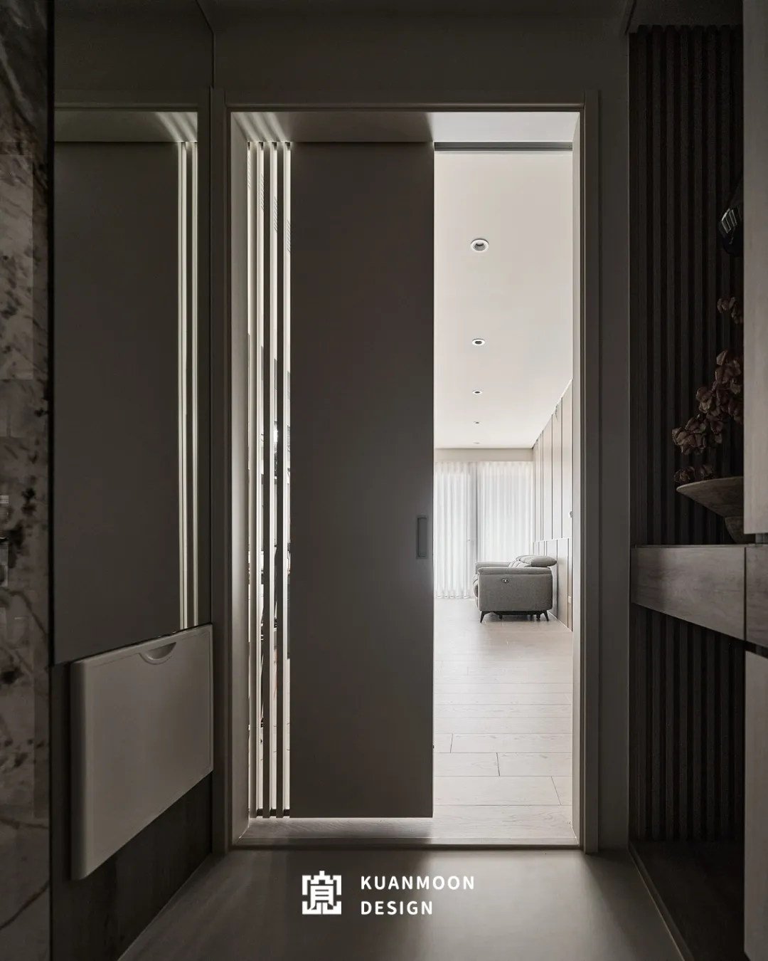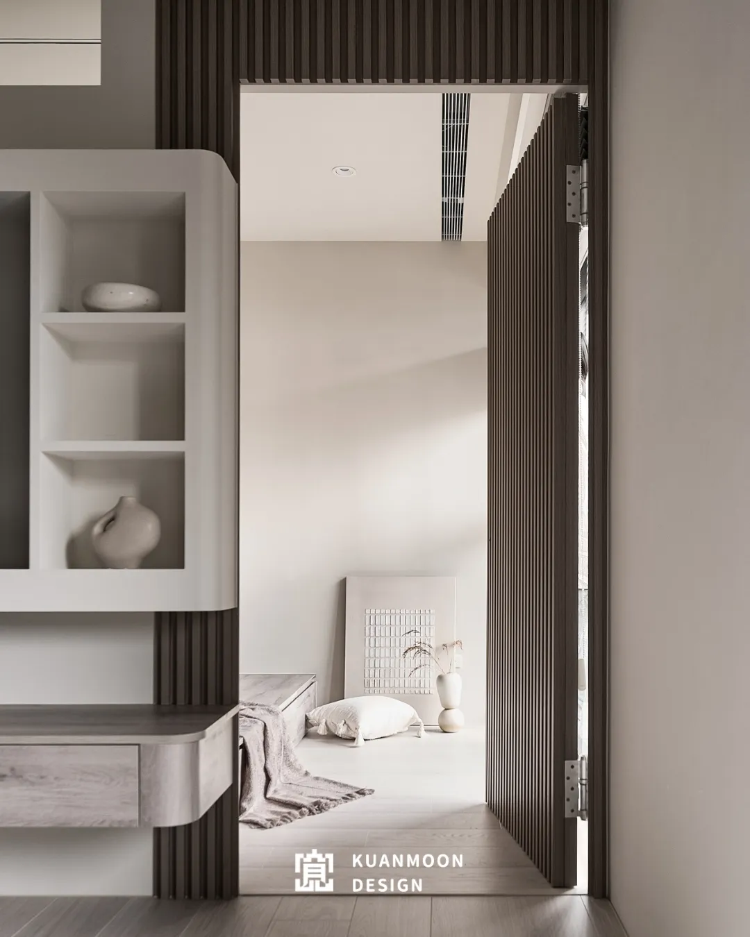以現代輕奢為基調,空間透過中性色與異材質的層次鋪陳,勾勒出理性而不冷調的生活場景。白、灰與木色構成穩定背景,黑色玻璃與金屬細節作為視覺錨點,使整體在簡約之中保有精緻張力。