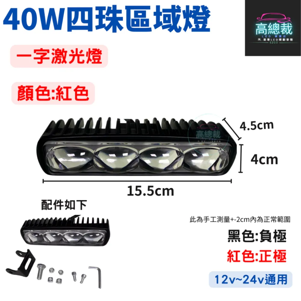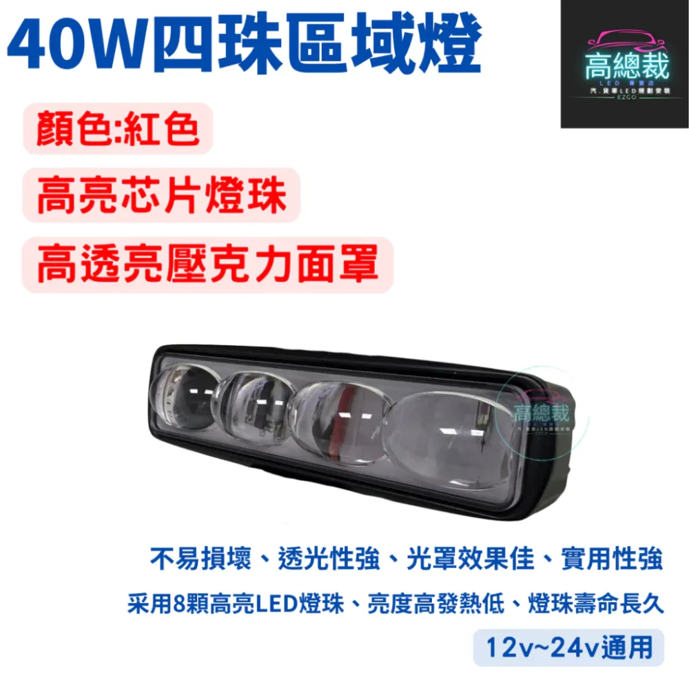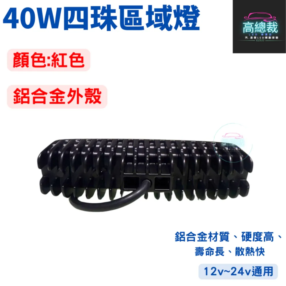 • 【高總裁LED 】台灣現貨 LED 40W四珠區域燈 警示燈 超聚光照地 12V~24V 紅光
