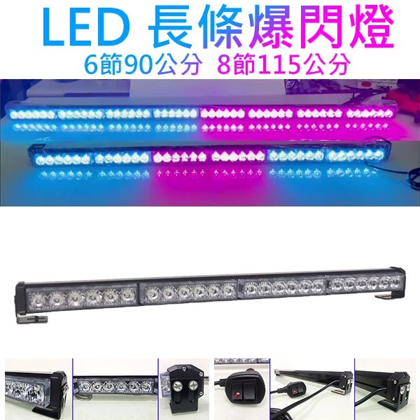 商品【高總裁LED 】台灣現貨 LED 長條爆閃燈 16種模式 四節 六節 八節 跑馬 頻閃 快閃 慢閃 前擋燈 可換吸盤