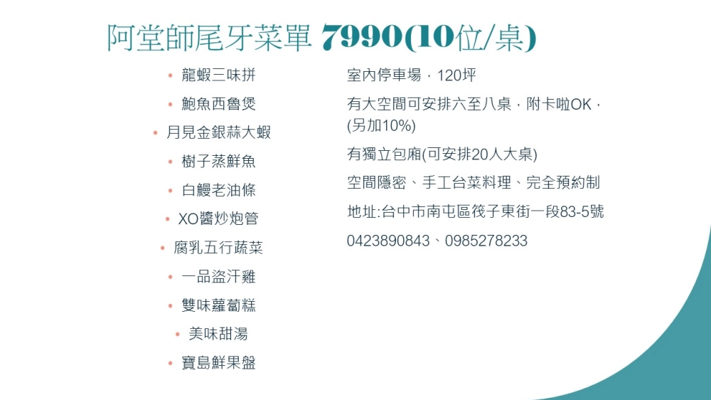 阿堂師料理餐廳-無菜單料理,合菜餐廳,台中無菜單料理,台中合菜餐廳,南屯區合菜餐廳