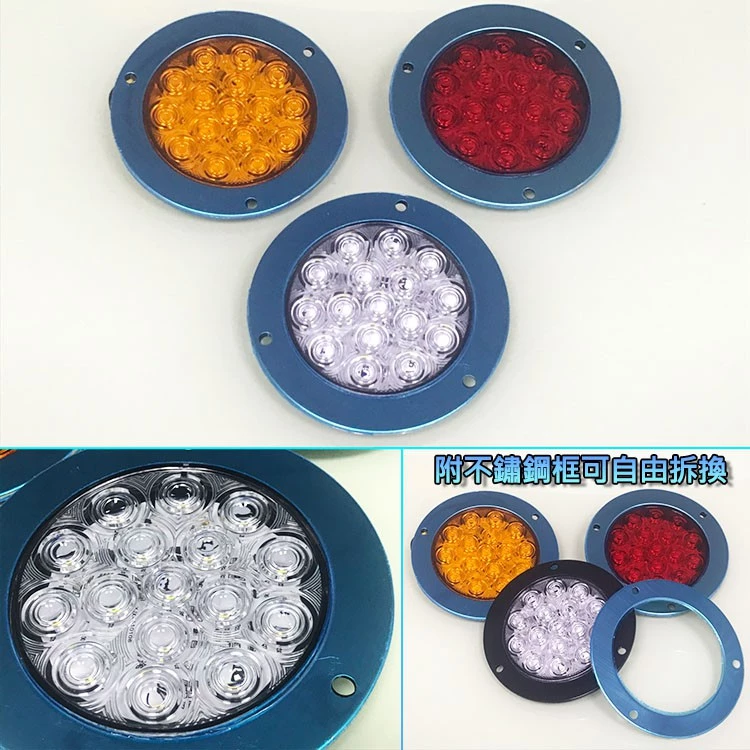 • 【高總裁LED 】台灣現貨 16ELD 4吋不鏽鋼圈單色尾燈 薄款 24V 防水 圓形尾燈 煞車燈 方向燈 小燈 警示燈