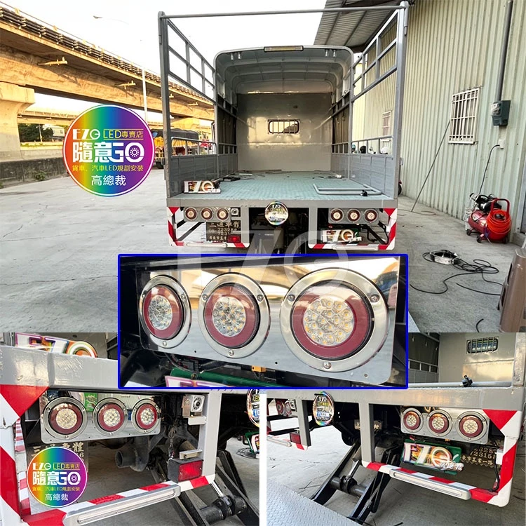 • 【高總裁LED 】台灣現貨 24V 不鏽鋼圈導光 雙色尾燈 4吋 防水 圓形尾燈 煞車燈 方向燈 小燈 警示燈 雙色燈