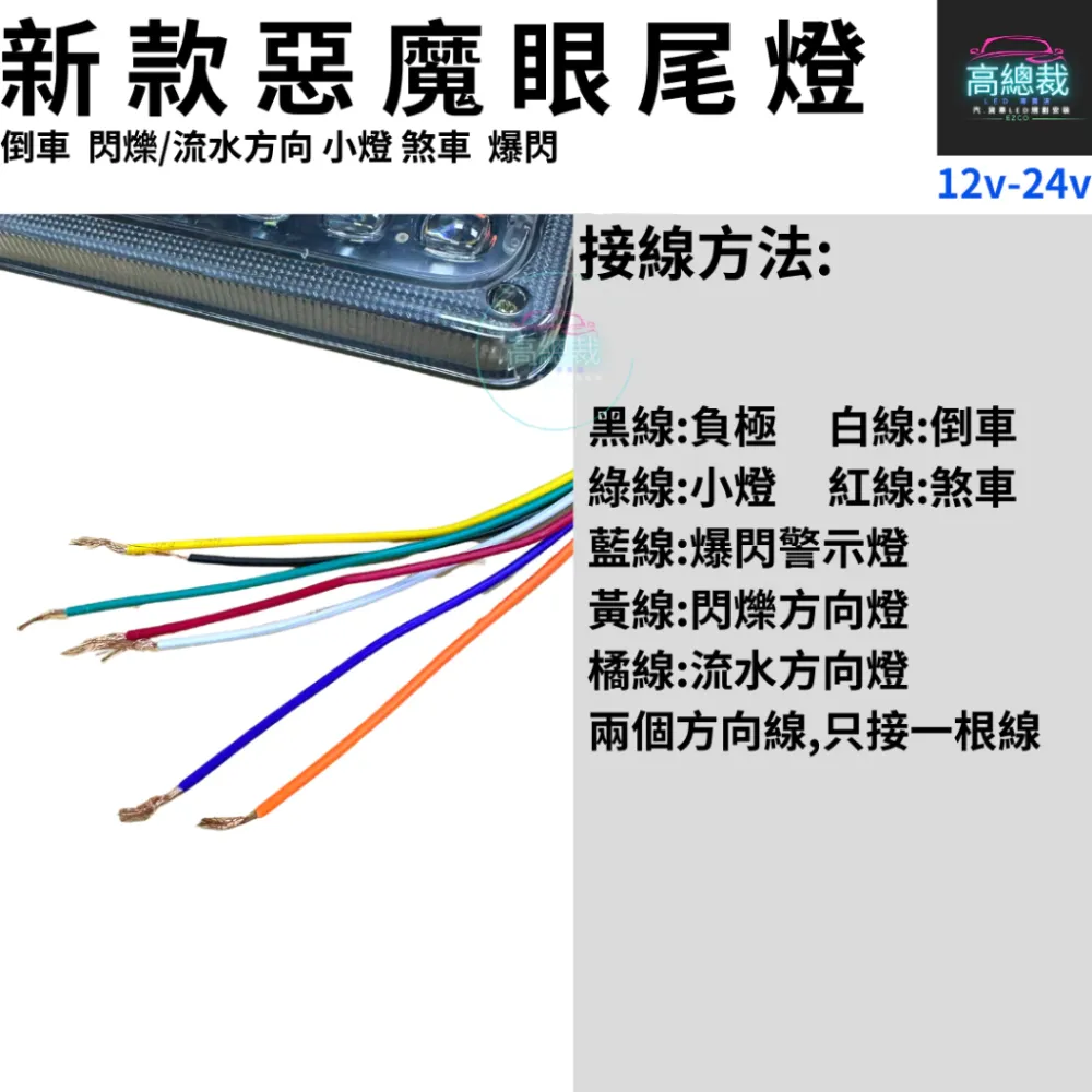 • 惡魔眼尾燈 12V-24V 倒車 閃爍 流水方向 煞車 小燈 防水 尾燈 爆閃警示燈 【高總裁LED 】台灣現貨
