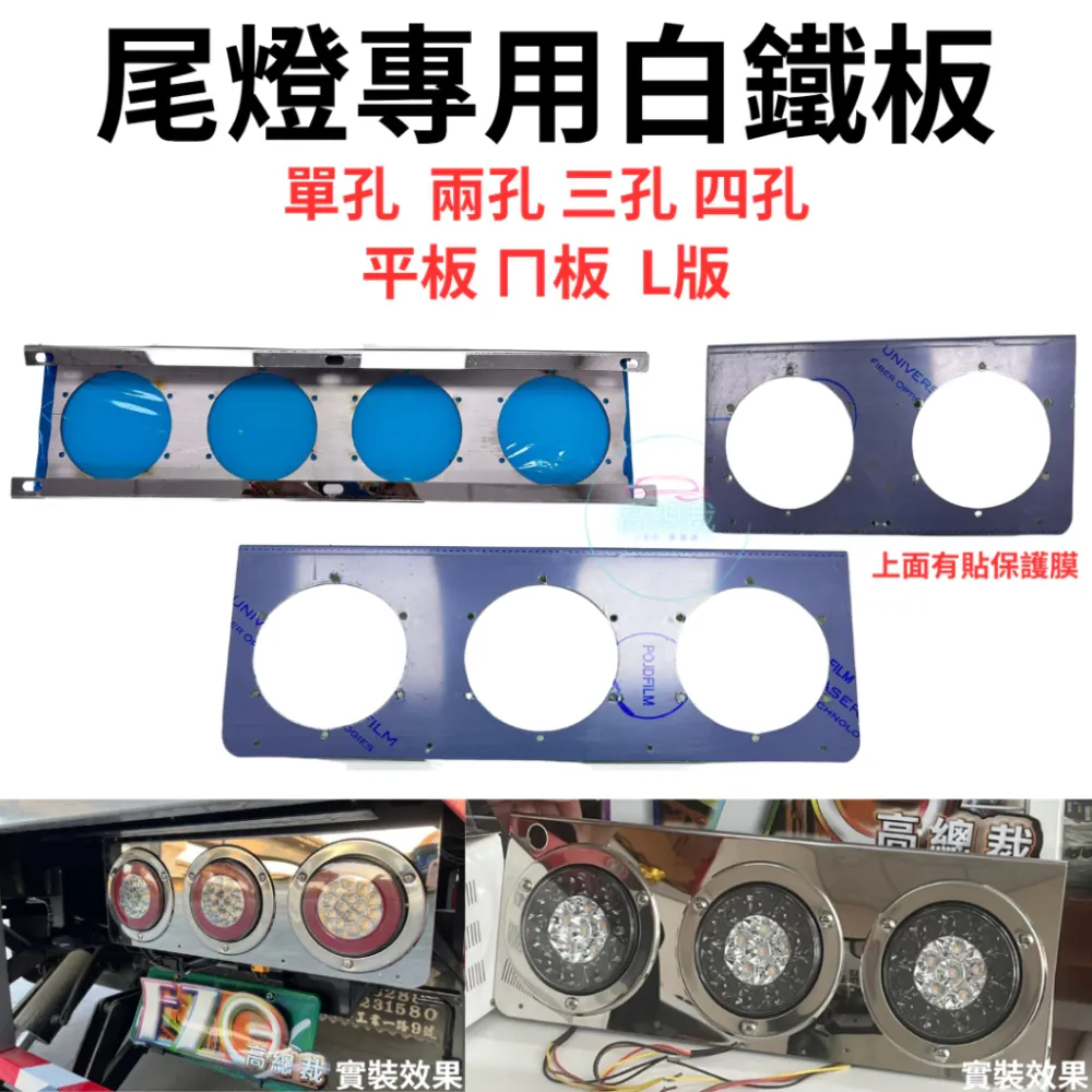 • 尾燈專用白鐵板 單孔 兩孔 三孔 四孔 平板 ㄇ板 L板 4吋尾燈 白鐵板 燻黑款 純色款【高總裁LED 】台灣現貨