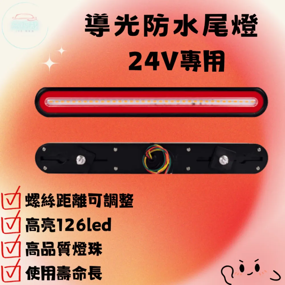 • 【高總裁LED 】台灣現貨 導光防水尾燈 126LED 2入 24V專用 輔助後尾燈 剎車燈 3合1功能 黃光 紅光
