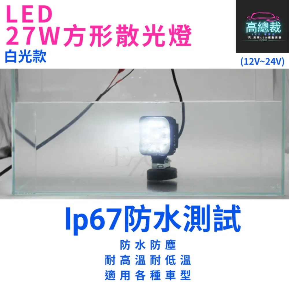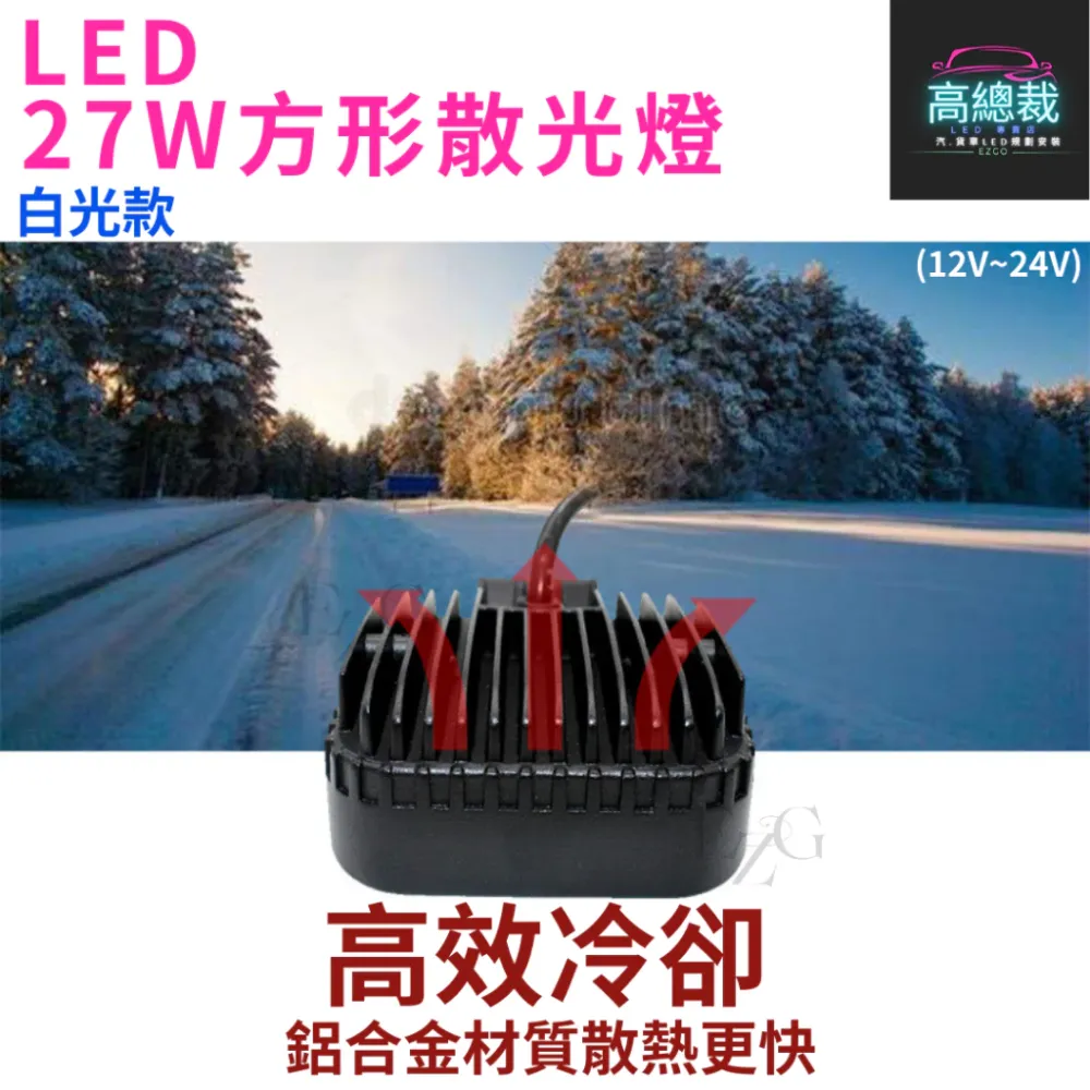 • 27W方形散光燈 工作燈 【高總裁LED 】台灣現貨 散光 白光 防水 高亮 12V 24V 照明 照輪 照地 超亮