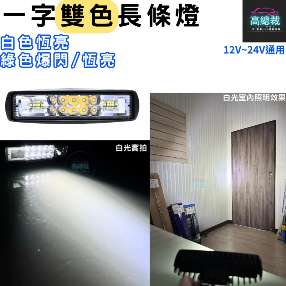 • 【高總裁LED 】台灣現貨 LED 一字雙色長條燈 綠光 白光 防水 照射燈 12V24V 工作燈 車頂燈 爆閃燈