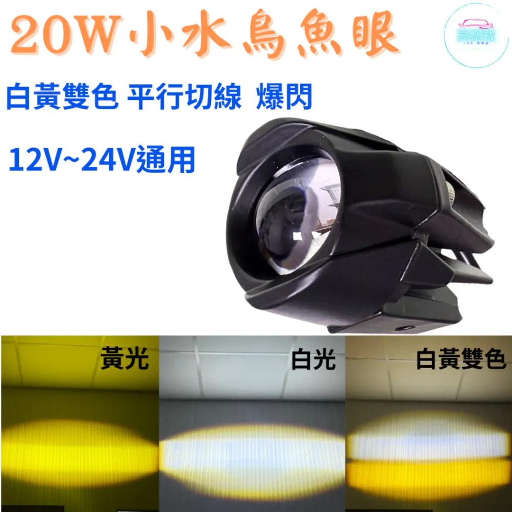 • 【高總裁LED 】台灣現貨 20W小水鳥魚眼 白光 黃光 白黃雙色 切線 爆閃 12V~24V 防水工作燈 超亮