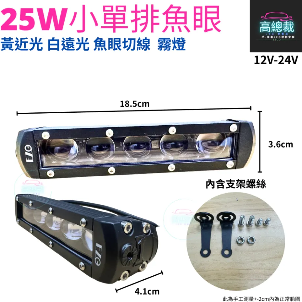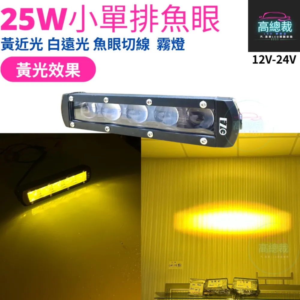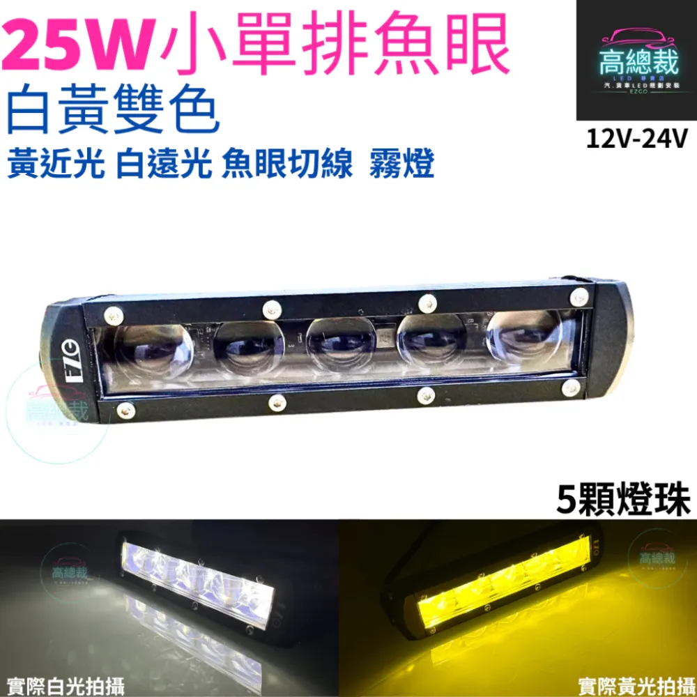 • 【高總裁LED 】台灣現貨 25w小單排魚眼工作燈 白光 黃光 白黃雙色 魚眼切線 12V~24V 防水工作燈 霧燈