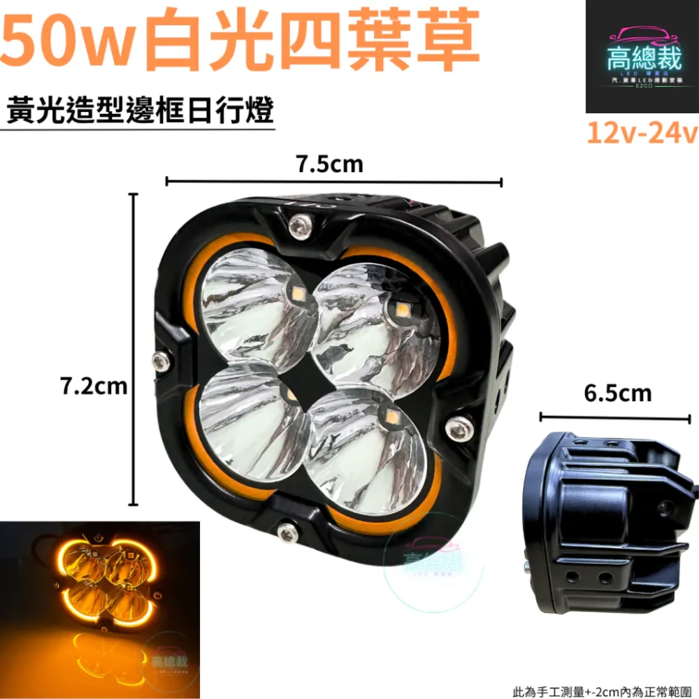 • 【高總裁LED 】台灣現貨 50W白光四葉草工作燈 聚散光 白光 12V 24V 黃光造型 超亮 輔助燈 照明燈
