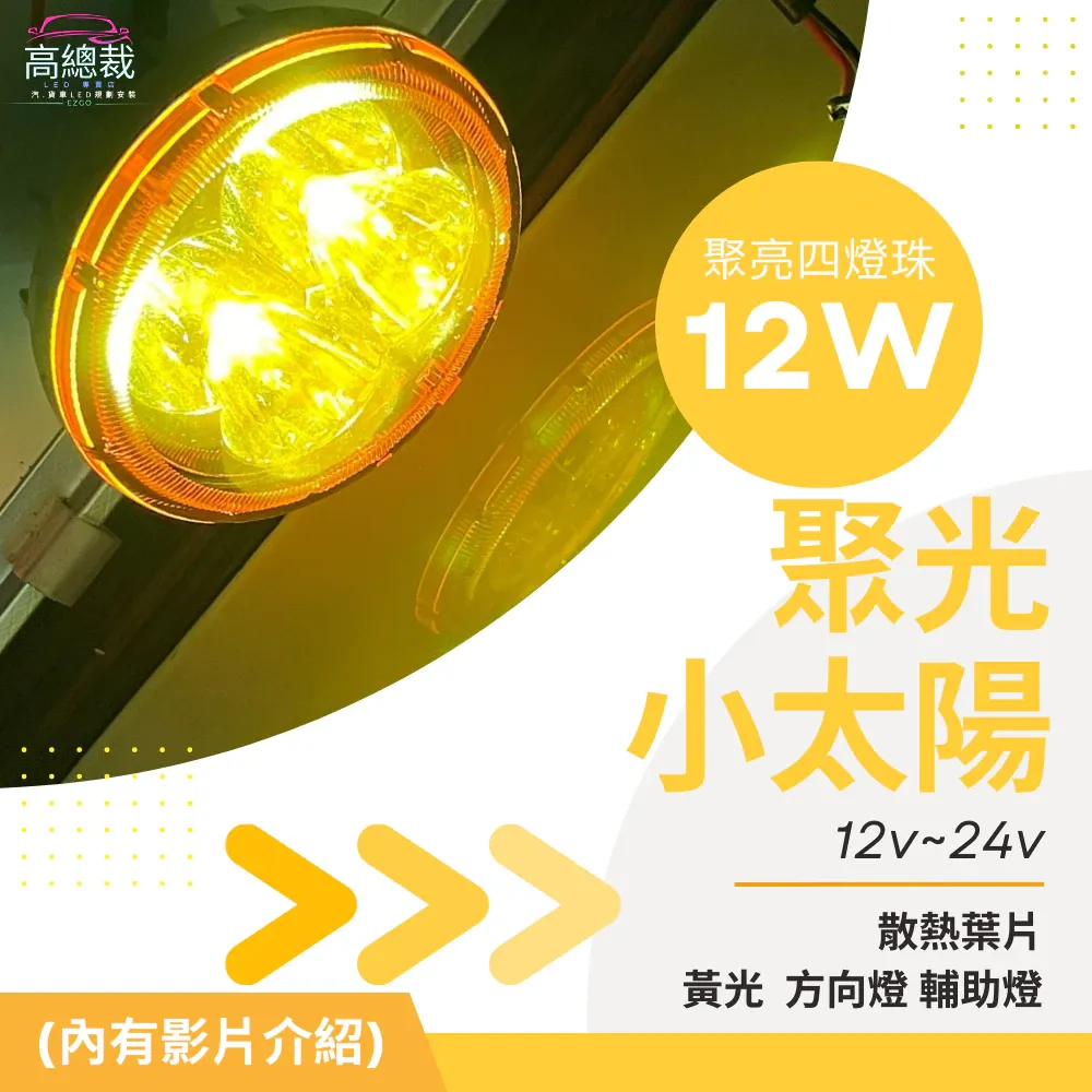• 【高總裁LED 】台灣現貨 12W 小太陽 LED 防水聚光 黃光 12~24V 方向燈 輔助燈 工作燈 車底燈