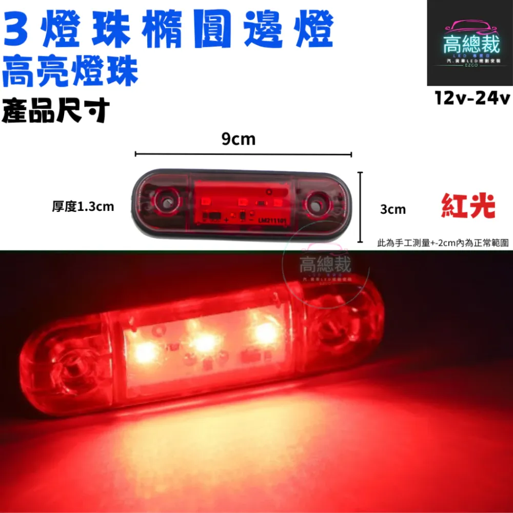 • 【高總裁LED 】台灣現貨 3燈珠橢圓邊燈 小燈 輔助燈 側燈 警示燈 邊燈 12V 24V 防水 信號燈 改裝