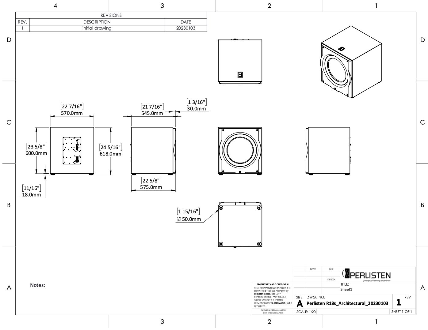 | 單體 | 460mm, Glass fiber diaphragm +/-23.7mm linear excursion |