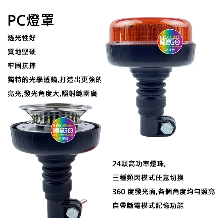 • 【高總裁LED 】台灣現貨 單層警示燈 黃光 直腳 灣腳 快拆 防水12V 24V 旋轉 慢閃 快閃 火犁燈