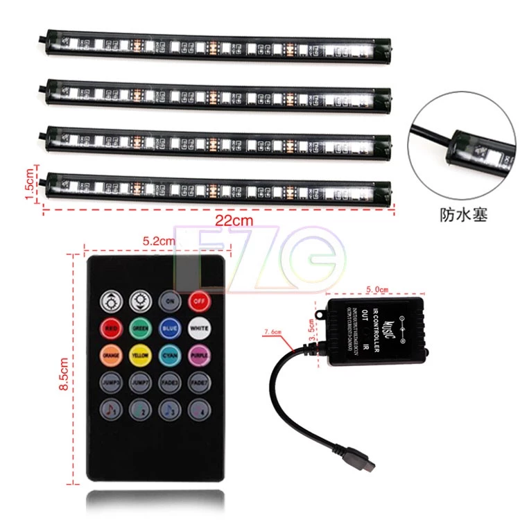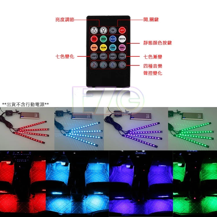 • 【高總裁LED 】台灣現貨 車內氣氛燈 USB插頭 一拖四 無線遙控變色 音樂聲音變色 RGB幻彩 氛圍燈 車用氣氛燈