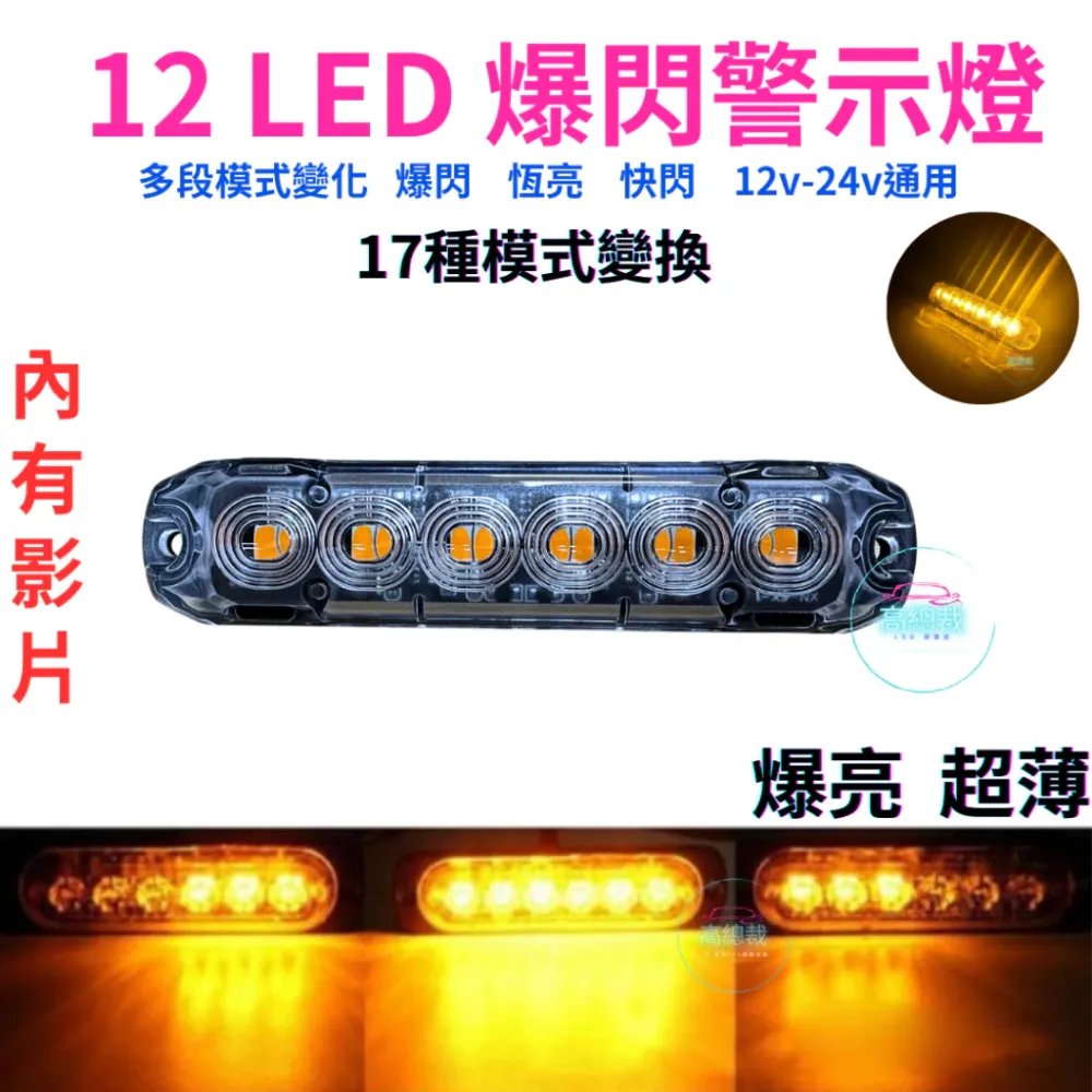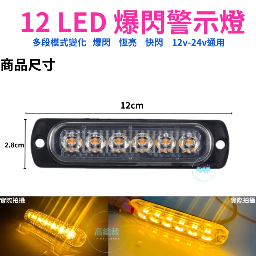 • 12LED爆閃警示燈 黃光 多種模式 恆亮 爆閃 對閃 超薄 爆亮 12V24V 快閃慢閃 【高總裁LED 】台灣現貨