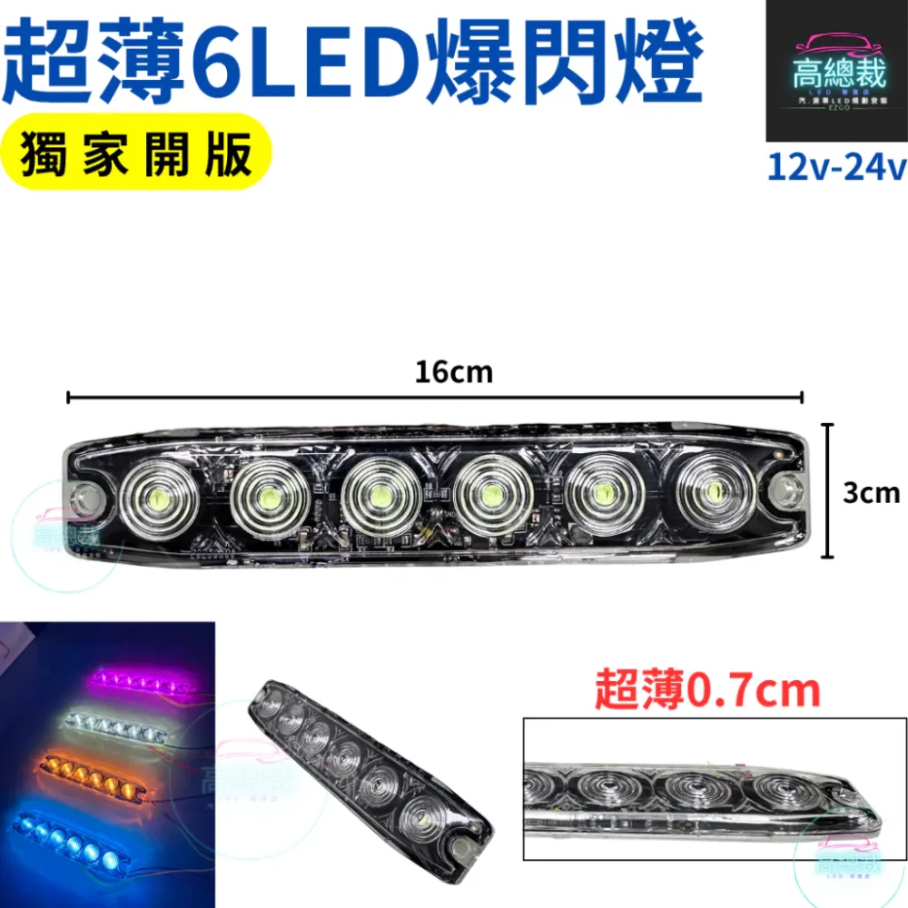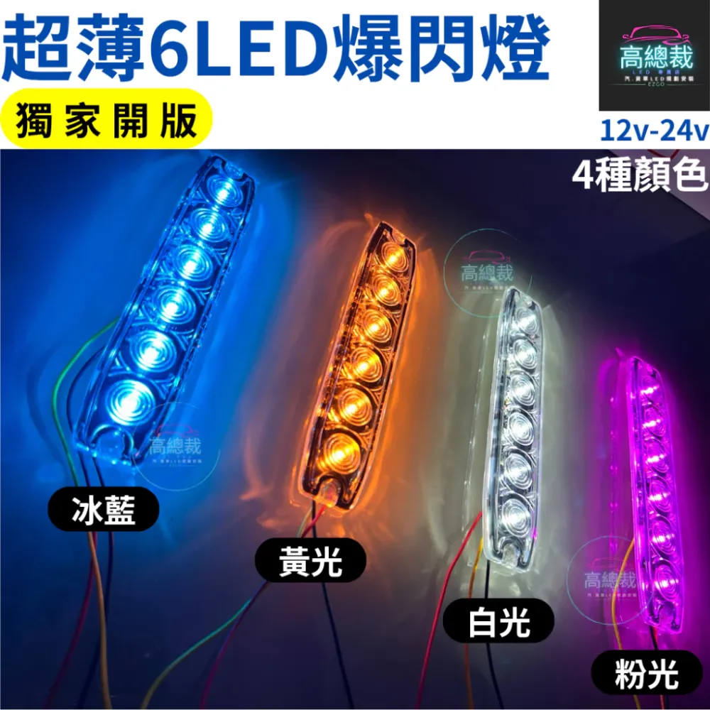 • 【高總裁LED 】台灣現貨 超薄6LED爆閃燈 16種模式 獨家開版 12V24V 防水 快閃慢閃 長亮 車底燈