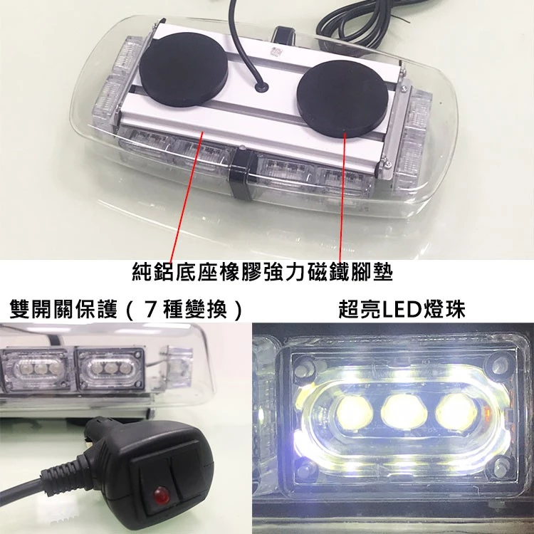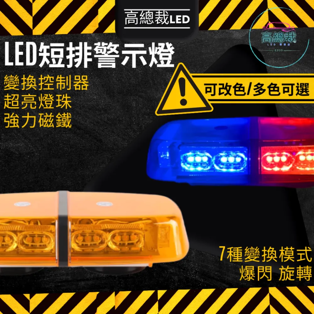 • 【高總裁LED 】台灣現貨 LED 短排警示燈 防水 紅藍 黃白 黃黃 爆閃燈 警示燈 強力磁鐵吸頂 12V 24V