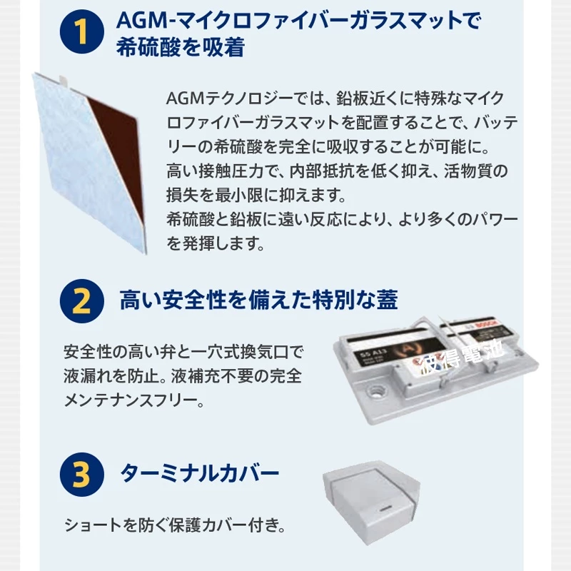 S6採用AGM技術: 適用於具啟動/停止系統及煞車動能收復功能的載客車輛
