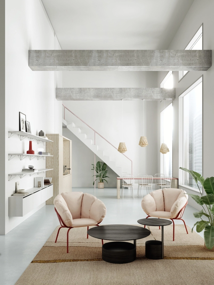 Parasol 咖啡桌的設計靈感源自池塘中悠然漂浮的睡蓮。由芬蘭設計師 Antrei Hartikainen 打造,桌面安置於單一金屬桌腳之上,呈現輕盈如羽毛般的視覺漂浮感。