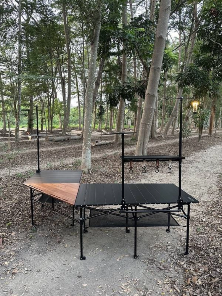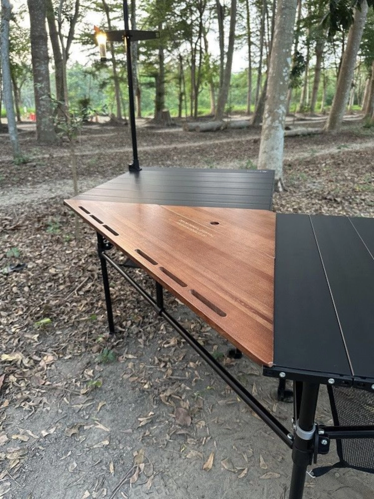 JG extension system 延伸系統桌新模式,三角轉板可讓品牌主桌’’長方桌’’、’’小方桌’’做90度結合,形成L型使用,將這套延伸系統可變性大幅增加,轉板材質選用胡桃木色原木板與噴砂黑鋁板兩種板材,類風格美學的融入,讓這張蛋捲桌呈現出與眾不同的風貌。