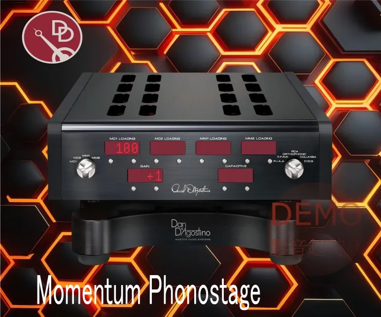 Momentum唱頭擴大機將最精良的類比電路與精準的數位控製完美結合。所有調整均可透過前面板完成,每個調節都配有獨立的LED顯示器。前面板上的按鈕可精確控制增益、兩個MC輸入端的電阻負載以及兩個MM輸入端的電阻和電容負載。更重要的是,使用者還可以透過選擇多種錄音室自唱片誕生之初就使用的錄音均衡曲線,對唱片播放進行微調。Momentum唱頭擴大機設有四個輸入接口,相容於多種唱臂和唱盤。它有兩個動圈輸入接口和兩個動磁輸入接口,每個接口均配有XLR和RCA插孔,此外還有XLR和RCA輸出接口。