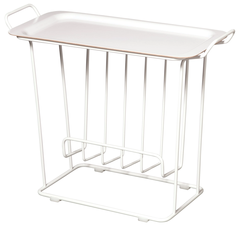 巧妙整合實用報架機能與可拆卸托盤設計,在純粹的北歐線條中實現靈活多變的日常收納。
