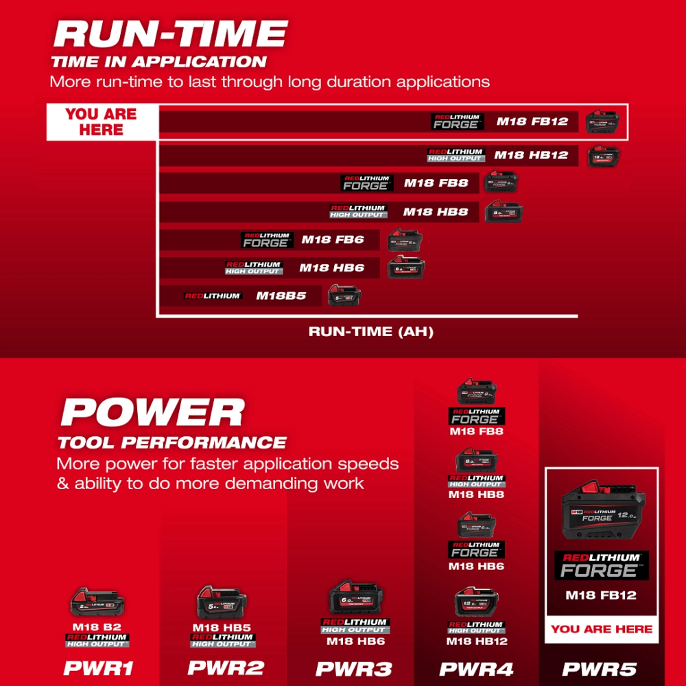 REDLITHIUM™ FORGE™ 提供 REDLITHIUM™ 中功率最大、充電速度最快且壽命最長的電池