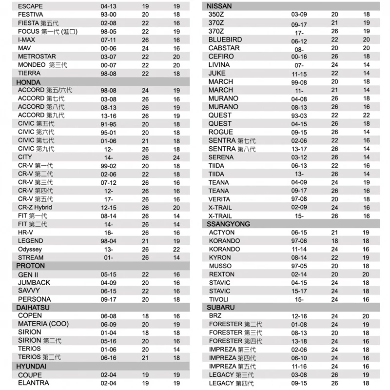 雨刷尺寸:26" (650 mm) + 16" (400 mm)