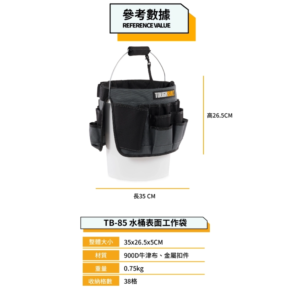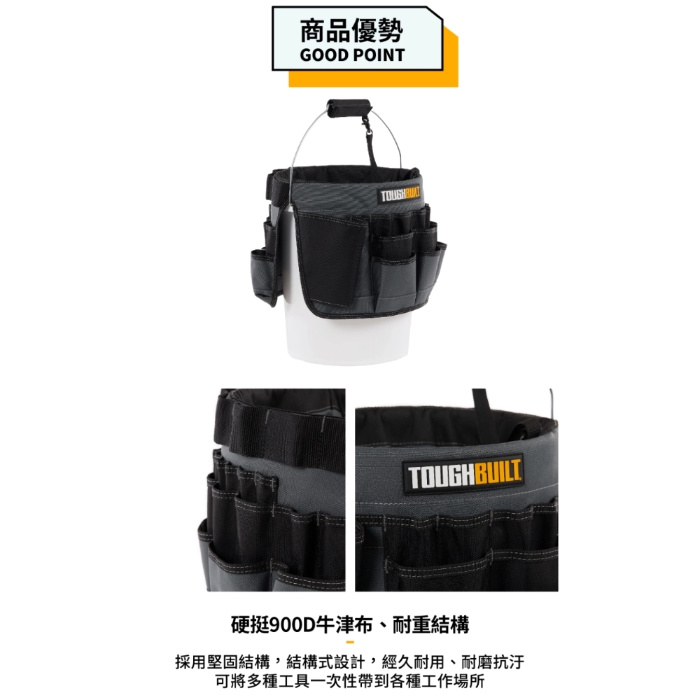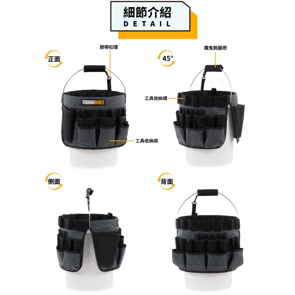 商品TB-CT-05 單格多功能釘袋 TOUGHBUILT 托比爾 12格 快扣式 捲尺扣 工具袋 翻轉支架