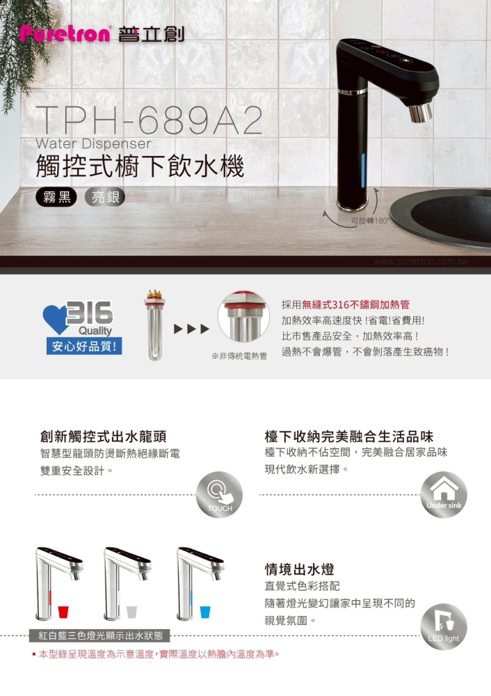 • 普立創廚下型溫熱飲水機(可調溫)