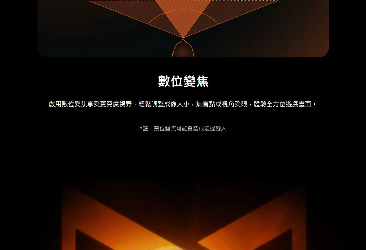 16.7 毫秒 (1080P 60 Hz), 16.7 毫秒 (2K 60 Hz) *時降低至 1080P 60 Hz, 16.7 毫秒 (4K 60 Hz), 4.2 毫秒 (1080P 240 Hz), 8.3 毫秒 (1080P 120 Hz), 8.3 毫秒 (2K 120 Hz) *時降低至 1080P 120 Hz - 支援解析度