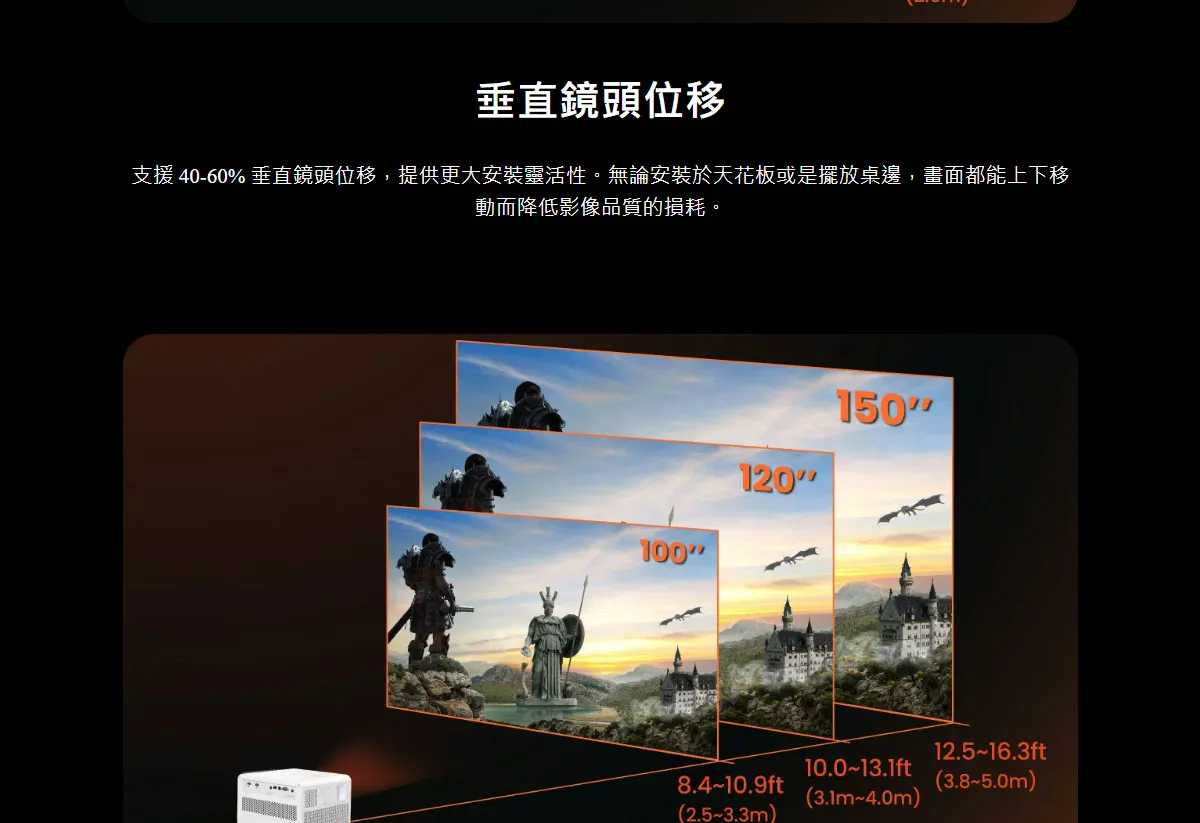 2D,(自動)垂直 ± 30 度;水平 ± 30 度 - 垂直鏡頭位移