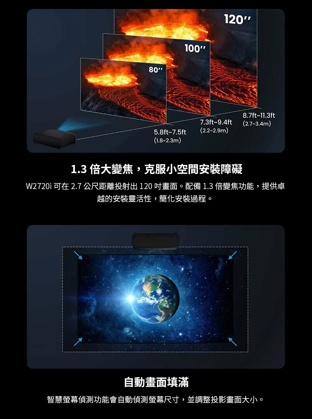 4K HDR 智慧色準導演機,2500 流明家庭劇院投影機 | W2720i