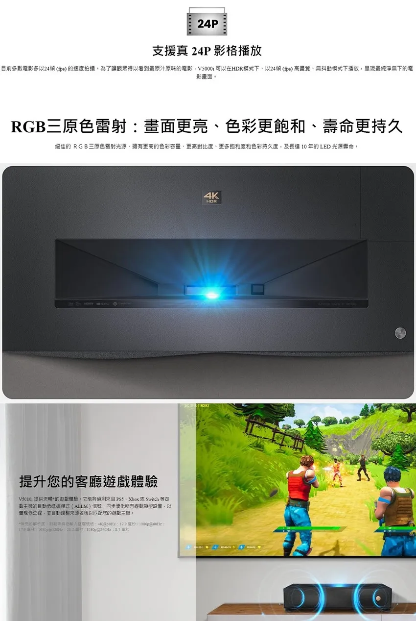 4K HDR 2500lm RGB 三原色雷射電視:劇院高畫質,開燈也清晰
