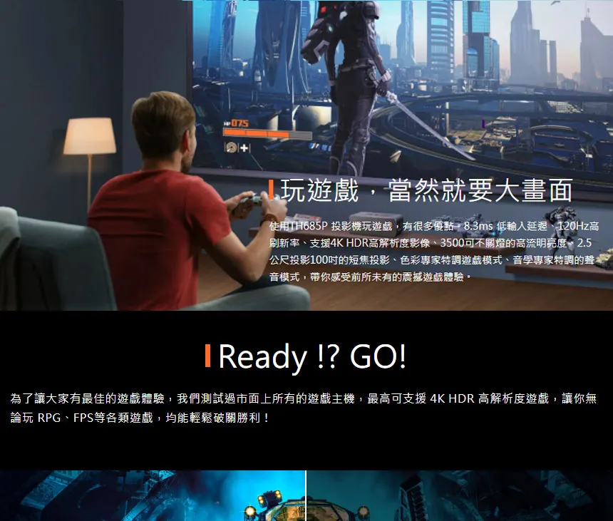商品BenQ GP520 4K UHD 2600流明 智慧調光 家庭劇院投影機
