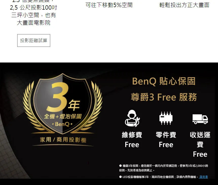 | 畫面投射距離 | ||