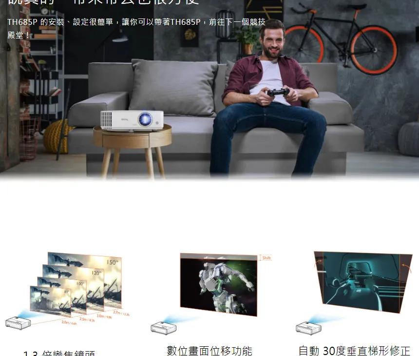 商品BENQ TK700STI 4K投影機 2米可打100吋 高更新率達240hz 3000流明 16ms延遲率